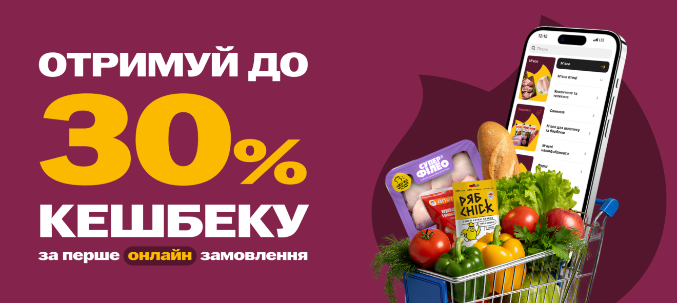 Кешбек 30%* за першу покупку онлайн та до 15% за всі наступні