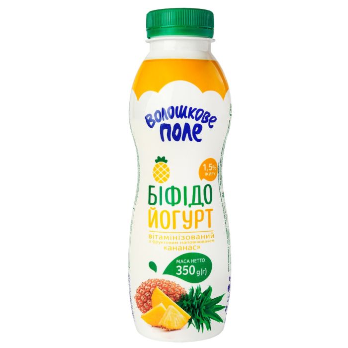 Йогурт біфідо вітамінізований "Волошкове поле" Ананас 1,5%, 350 г наявний для покупки з кроком збільшення в 1