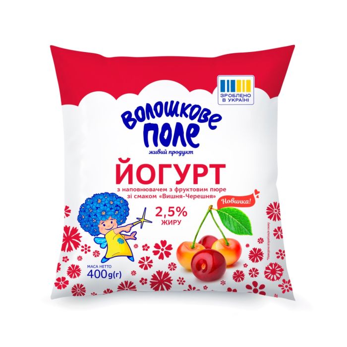Йогурт питний "Волошкове поле" Вишня-Черешня 2,5% , 400 г наявний для покупки з кроком збільшення в 1