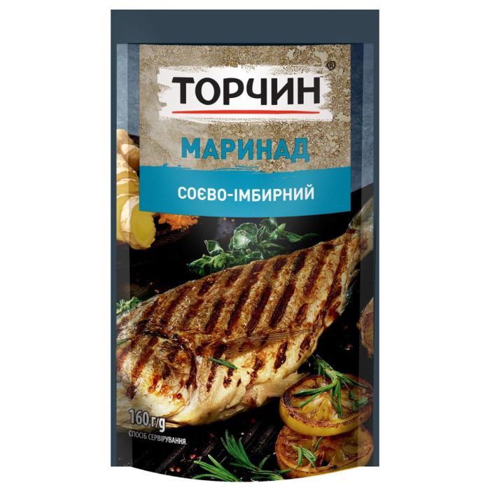 Соєво-імбирний маринад від ТМ «Торчин» — це ароматна суміш, яка додає стравам неповторного азійського смаку. Основними інгредієнтами цього маринаду є соєвий соус та імбир. До складу також входять різні спеції.