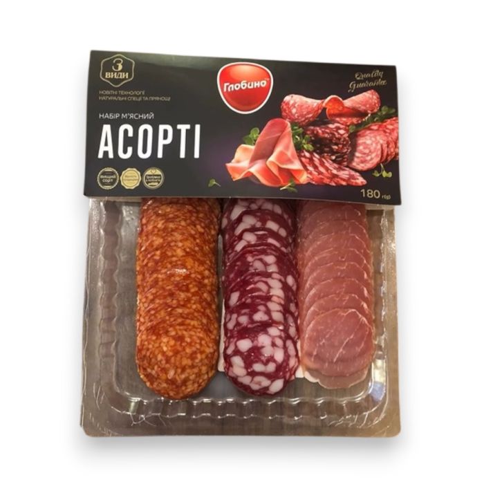 Набір ковбас "Глобино" Асорті нарізка, вищий сорт, 180 г наявний для покупки з кроком збільшення в 1