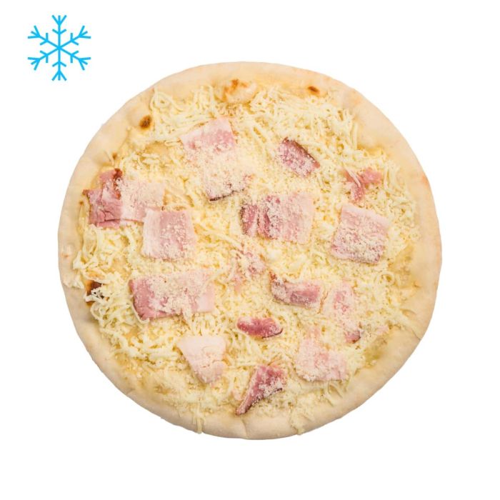 Начинка піци «Карбонара» — це обсмажений бекон, ніжний кремовий соус, яйця і сир. Піца пропонується вам у замороженому стані, що забезпечує довгий термін придатності та збереження свіжості інгредієнтів.