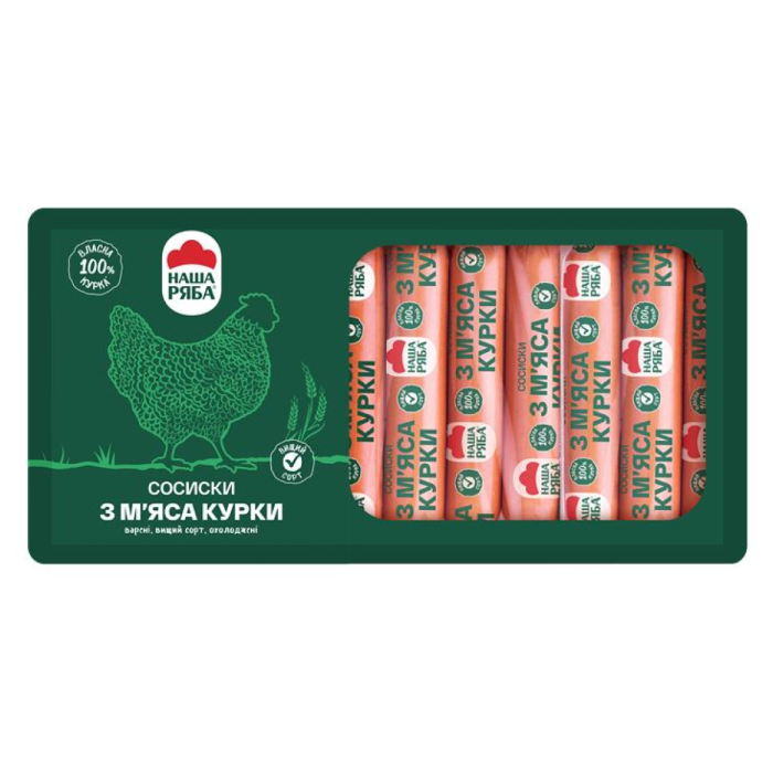 Сосиски з м'яса курки "Наша Ряба" варені, вищий сорт, ~1 кг