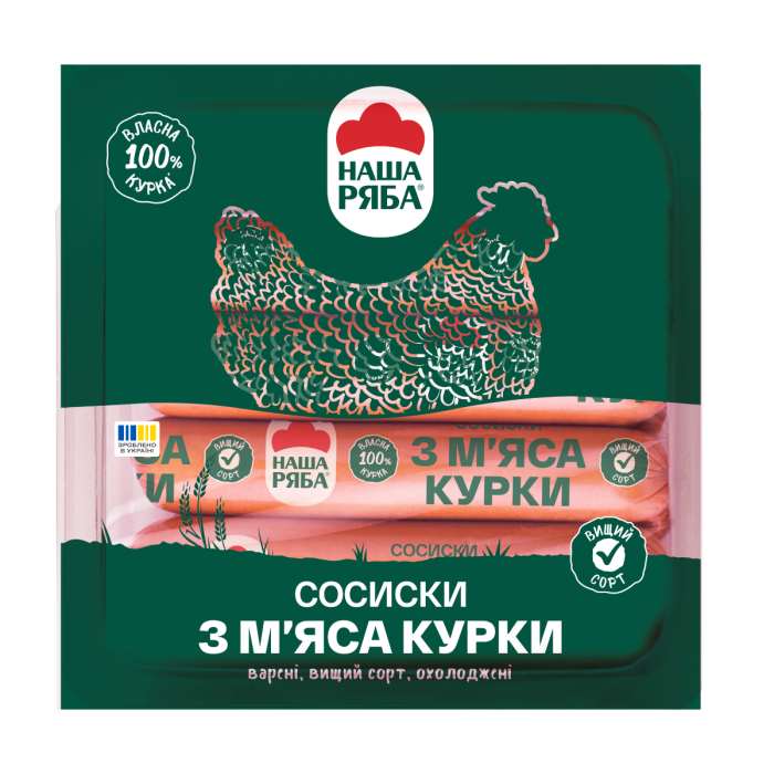 Сосиски з м'яса курки "Наша Ряба" варені, вищий сорт, ~600 г